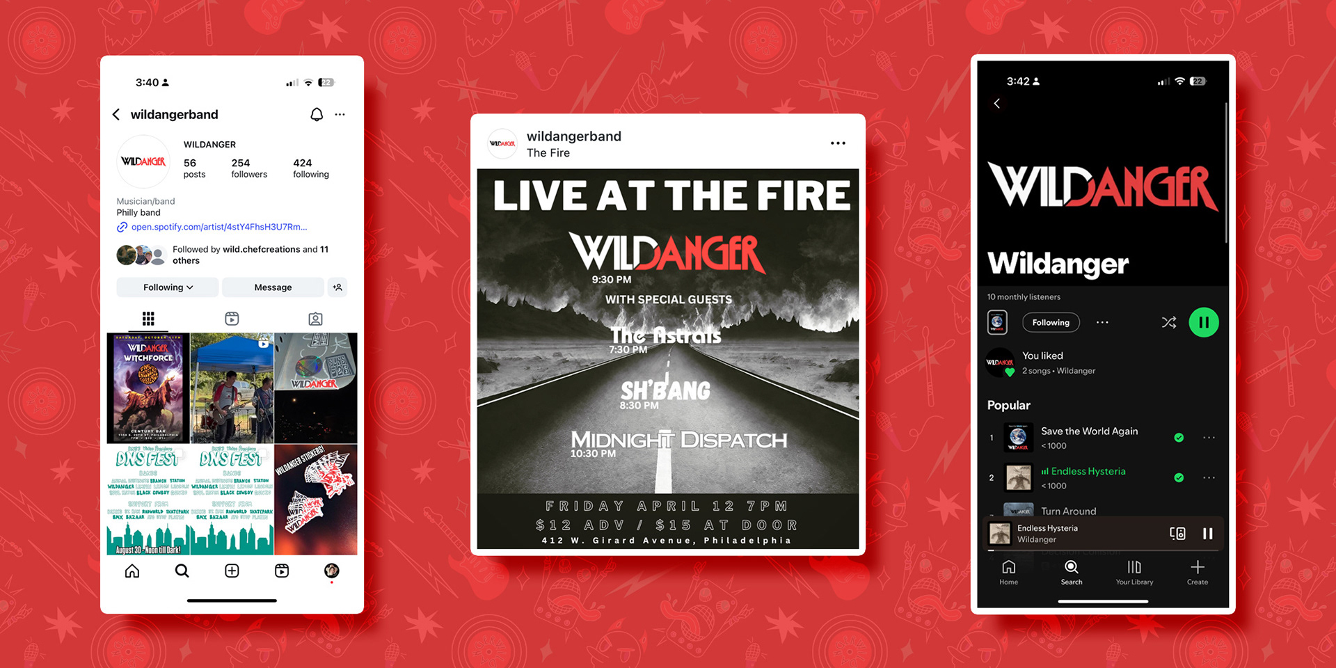From amp stickers to a strong social media presence, WilDanger’s identity feels cohesive, confident, and unmistakably rock n' roll.